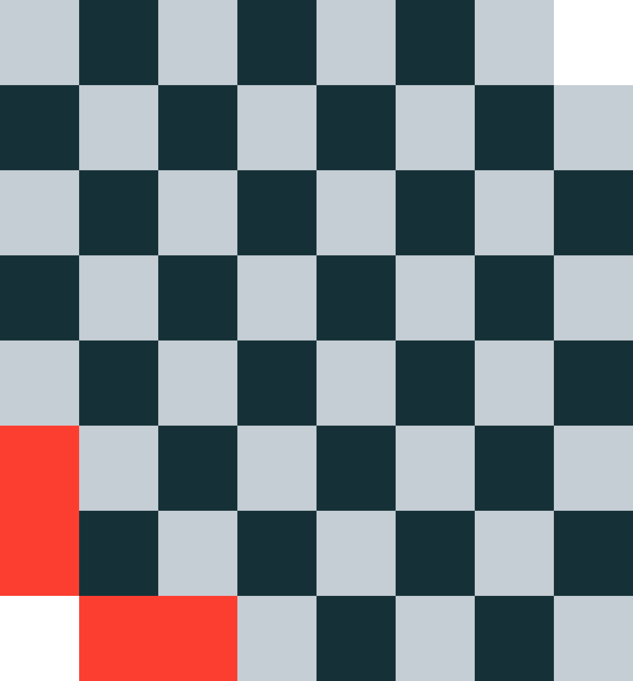 Now, it's clear that a normal chessboard can be covered by 2x1 blocks. The question then is the following: Can a mutilated chessboard be covered using (exactly 31) 2x1 blocks?